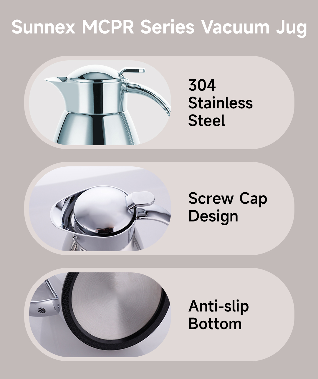 Sunnex naujieji MCPR serijos 304 nerūdijančio plieno vakuuminiai ąsočiai – profesionalus našumas komerciniams ir buitiniams poreikiams