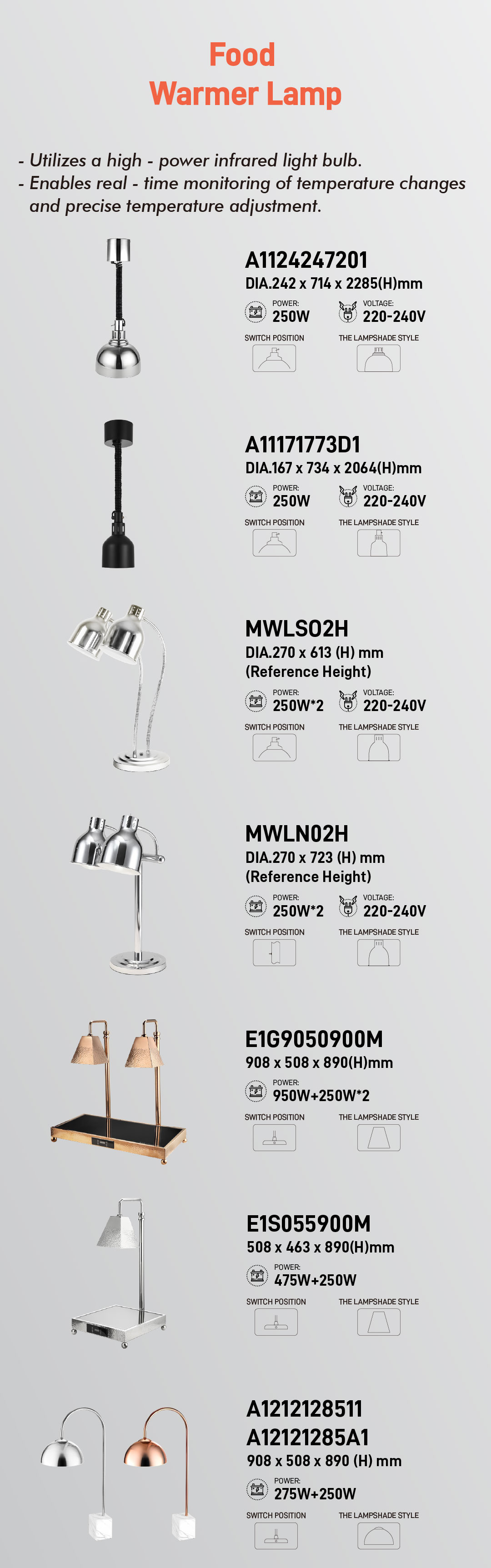 mūsų naujausia maisto šildytuvo lempų serija – sukurta taip, kad jūsų firminiai patiekalai pasiektų stalą tiksliai taip, kaip numatyta: karšti, švieži ir vizualiai stulbinantys.