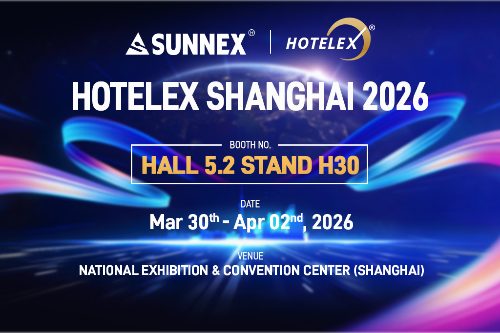 Visos SUNNEX komandos vardu labai džiaugiamės galėdami asmeniškai pakviesti jus apsilankyti mūsų stende HOTELEX Shanghai 2026 – pavyzdiniame pasaulinės svetingumo ir maitinimo pramonės renginyje.