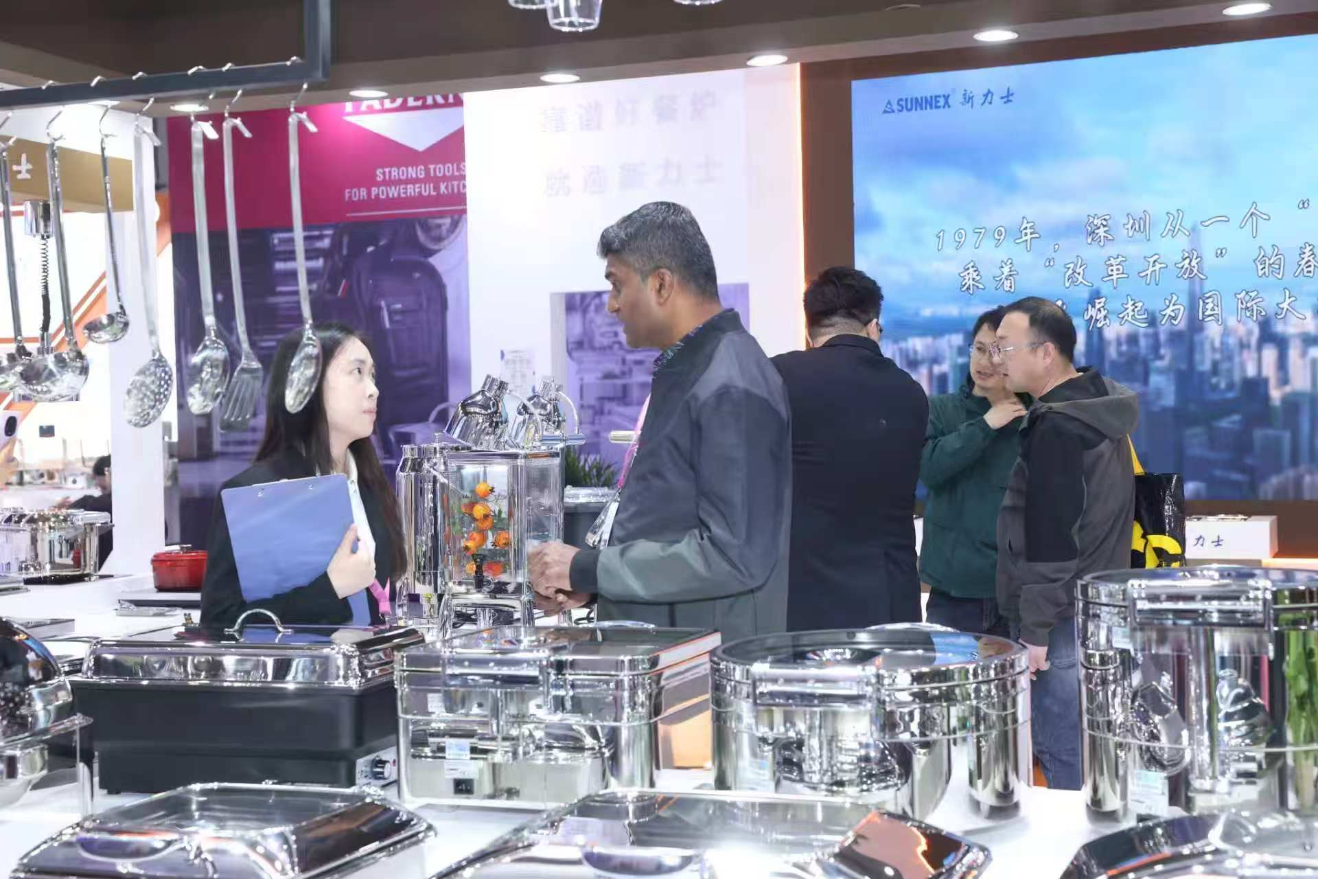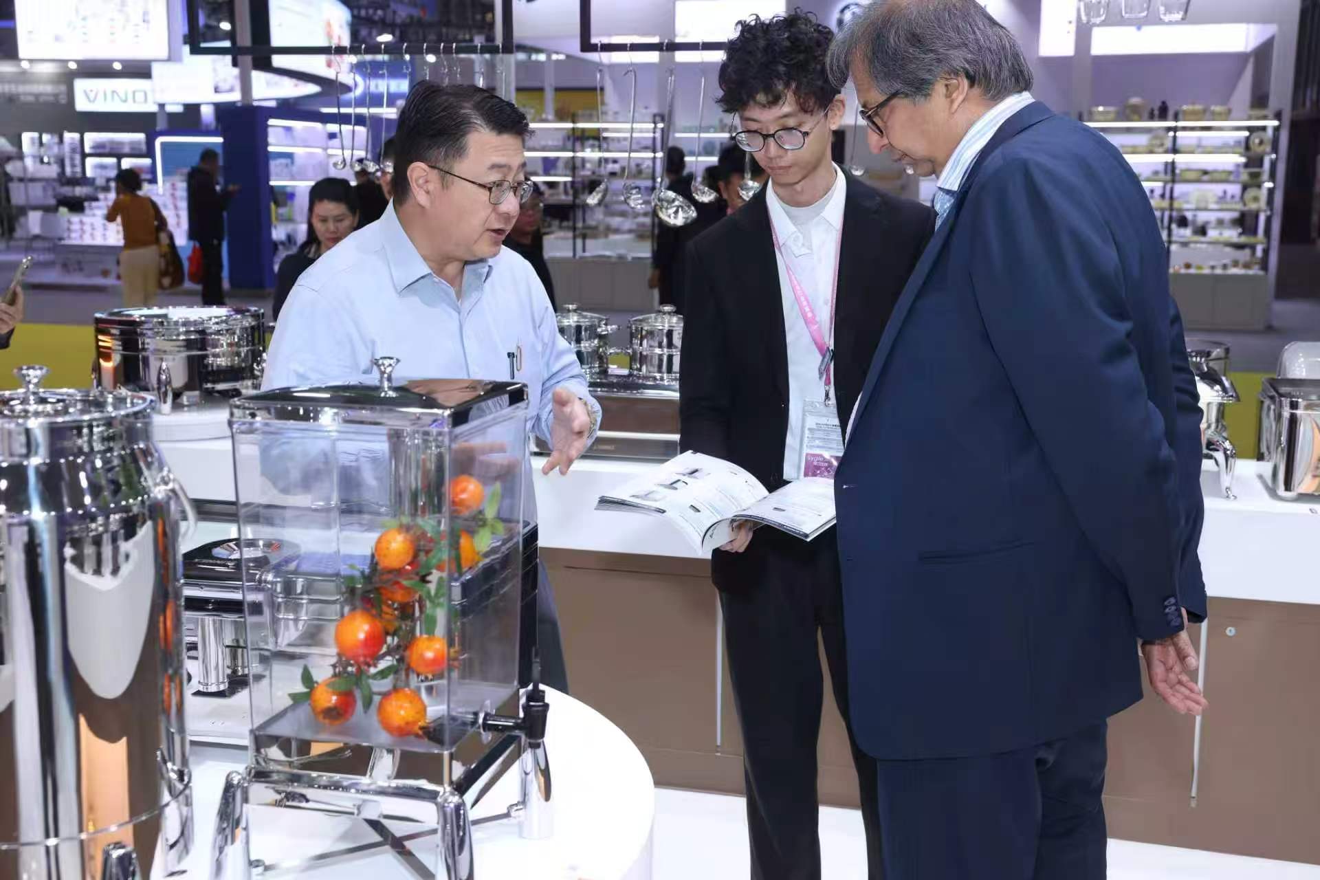 Parodos metu prekės ženklas daugiausia dėmesio skyrė bestselerių demonstravimui, įskaitant bevandenius sausus trinamus indus, klasikines nerūdijančio plieno gastronormines keptuves, Verona serijos pieno urnas, gėrimų iš ledo vamzdelius ir kitus naujus produktus, tenkinančius įvairius aukščiausios klasės viešbučių, tinklinio maitinimo prekių ženklų ir personalo valgyklų poreikius. Mūsų stende nuolat lankėsi profesionalūs užsienio pirkėjai Viduriniuose Rytuose, Afrikoje, Europoje, Amerikoje ir Pietryčių Azijoje. Mūsų profesionali komanda teikė individualius produktų pristatymus ir pritaikytų sprendimų palaikymą išsamioms bendradarbiavimo diskusijoms.